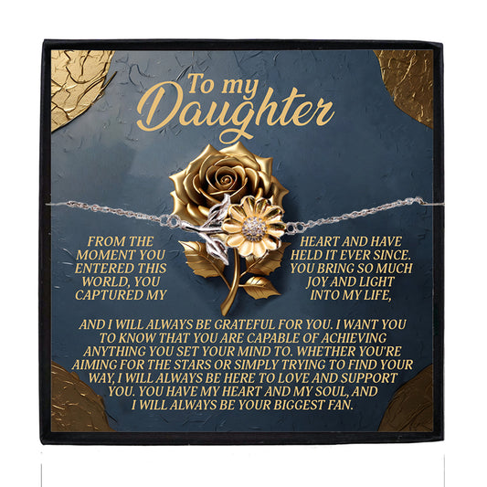 To My Dearest Daughter – Keep Reaching for the Stars - Sunflower Bracelet Gift with Message Card