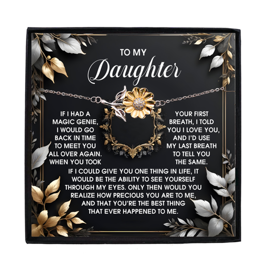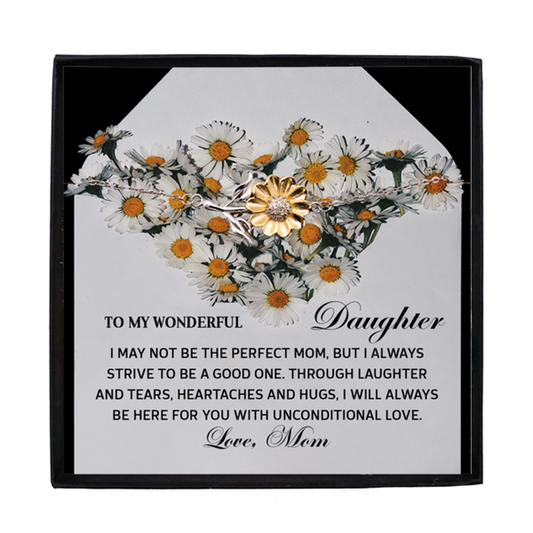 Daughter Sunflower Bracelet Sterling Silver with 18K Gold-Plated Petals – Sentimental Birthday Graduation Christmas Jewelry Gift from Mom Unconditional Love Heartfelt Message Card
