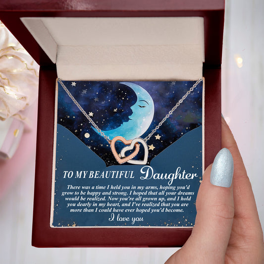 To My Beautiful Daughter - Your Heart Shines Brighter Than Any Star - Interlocking Hearts Necklace