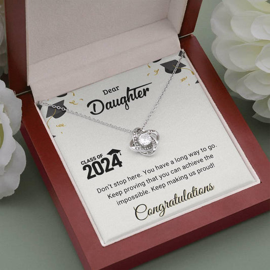 Daughter Graduation Class of 2024 Don't Stop Here Love Knot Pendant Necklace