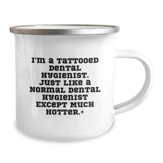 Funny Dental Hygienist Gifts for Men - I'm A Tattooed Dental Hygienist Except Much Hotter.+, Camping Mug - Unique Christmas Unique Gifts from Friends, Coworkers, Family - 12 oz Stainless Steel