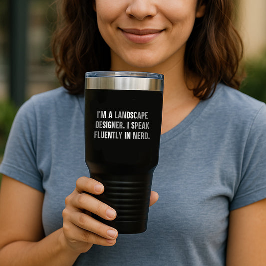 Landscape Designer Gift - I’m a Landscape Designer. I Speak Fluently in Nerd – Funny Black Stainless-Steel Polar Travel Tumbler