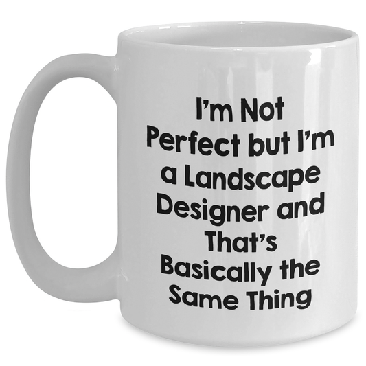 Funny Landscape Designer Gifts for Her from Friends on Mother's Day, I'm Not Perfect But I'm A Landscape Designer And That's Basically The Same Thing White Coffee Mug