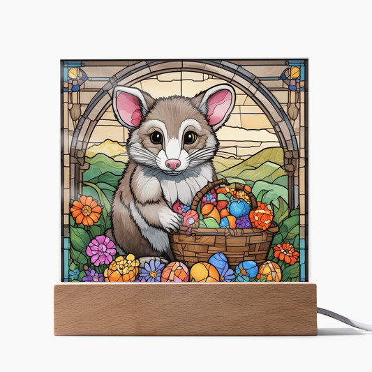 Possum LED Acrylic Plaque, Night Light – Spring Flowers & Easter Egg Basket – Wooden Base (Battery or Corded)