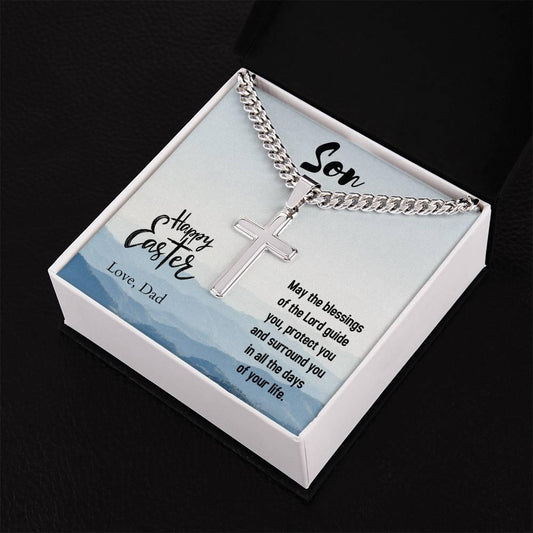 Gift for Son - Happy Easter May the Blessings of the Lord Guide You Personalized Engraved Cross Necklace