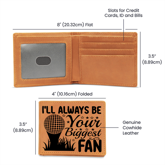 I'll Always Be Your Biggest Fan Golf Wallet – Full Grain Leather Bifold Wallet – Heartfelt Gift for Dad, Coach, or Husband