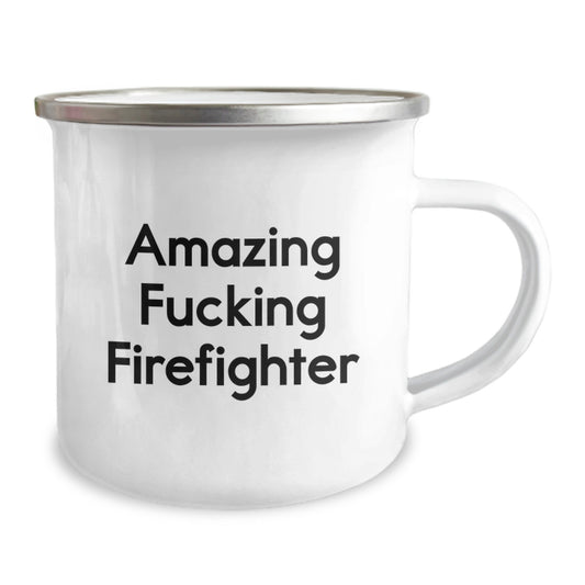 Funny Firefighter Gifts for Men, Camping Mug with 'Amazing F--king Firefighter' Quote, 12 oz Stainless Steel with Enamel Finish, Graduation Unique Gifts from Family
