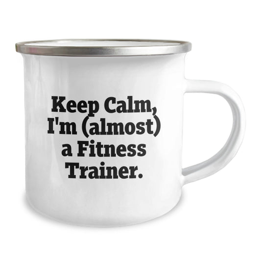 Funny Fitness Trainer Gifts for Men, Women, Friends and Coworkers - Keep Calm, I'm (almost) A Fitness Trainer. Christmas Unique Mugs for Fitness Lovers, Camping Trip Companions