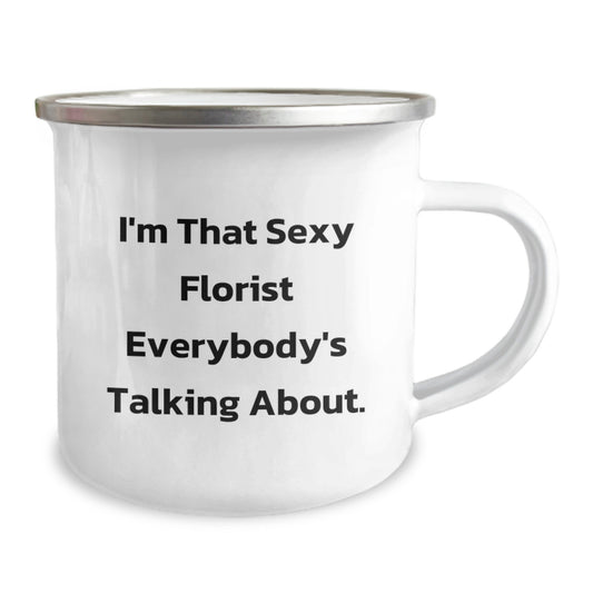Funny Florist Gifts - I'm That Sexy Florist Everybody's Talking About, Enamel Camping Mug for Florist Lover, Gifts from Friends to Family at Christmas