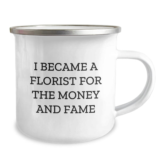 Funny Florist Gifts for Men, Women, or Friends - 'I Became A Florist For The Money And Fame' Camping Mug, Christmas Unique Gift Ideas from Family to Florists