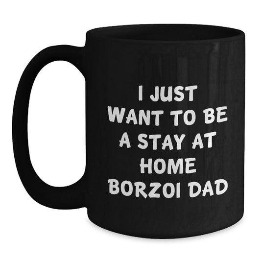 Funny Borzoi Dog Gifts for Men - I Just Want To Be A Stay At Home Dad - Black Coffee Mug, Graduation Unique Gifts from Family