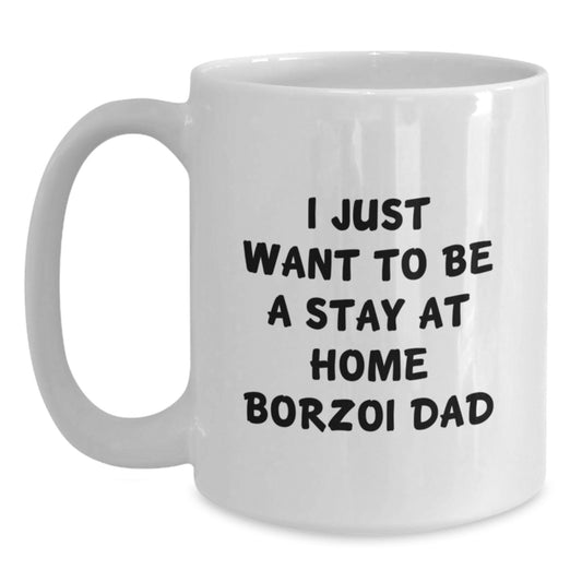 Borzoi Dog Lover Funny Gifts from Dad to Grad, I Just Want To Be A Stay At Home Borzoi Dad, White Coffee Mug for Men
