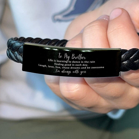 Brother Braided Leather Bracelet Life is Learning to Dance in the Rain - Birthday, Christmas Holiday Gifts