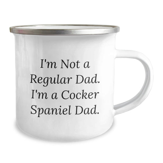 Funny Cocker Spaniel Dad Gifts for Men, Unique Christmas Memorable Presents from Dad to Son, 'I'm Not A Regular Dad. I'm A Cocker Spaniel Dad.' Enamel Camping Mug