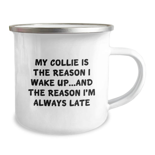 Funny Collie Dog Lover Tumbler 'My Collie Is The Reason I Wake Up...and The Reason I'm Always Late' Birthday Unique Gifts