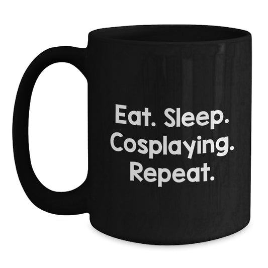 Cosplaying Gifts from Friends for Men - Eat Sleep Cosplaying Repeat Black Coffee Mug, Unique Graduation Gifts