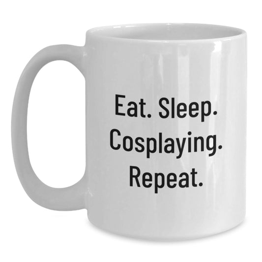 Funny Cosplaying White Coffee Mugs for Friends Gifts from Family, Eat. Sleep. Cosplaying. Repeat. for Graduation