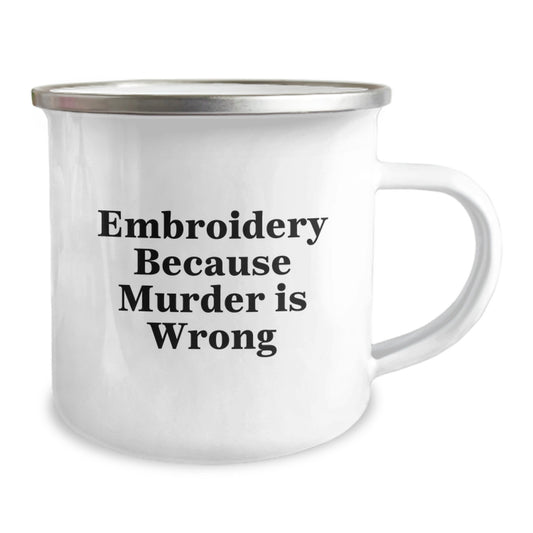 Funny Embroidery Gifts for Men, Christmas Unique Camping Mugs from Friends, Embroidery Because Murder Is Wrong Quote