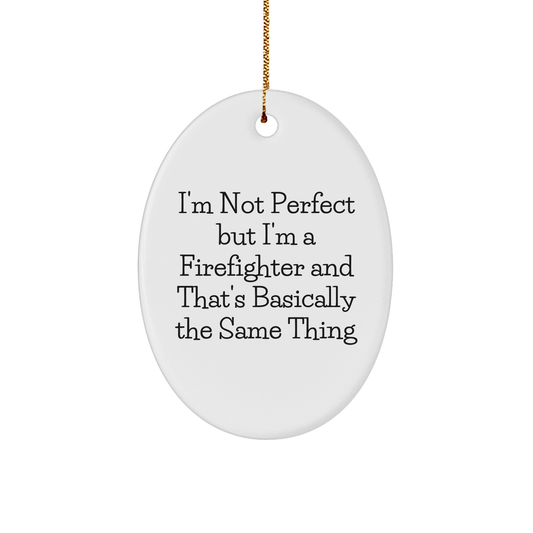 Firefighter Oval Ornament, Funny Quote 'I'm Not Perfect But I'm A Firefighter And That's Basically The Same Thing', Gifts for Firefighters from Family
