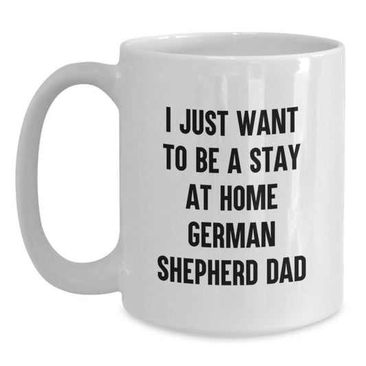 Funny German Shepherd Dog Gifts for Men from Friends - White Coffee Mug for I Just Want To Be A Stay At Home Dad, Unique Graduation Gifts