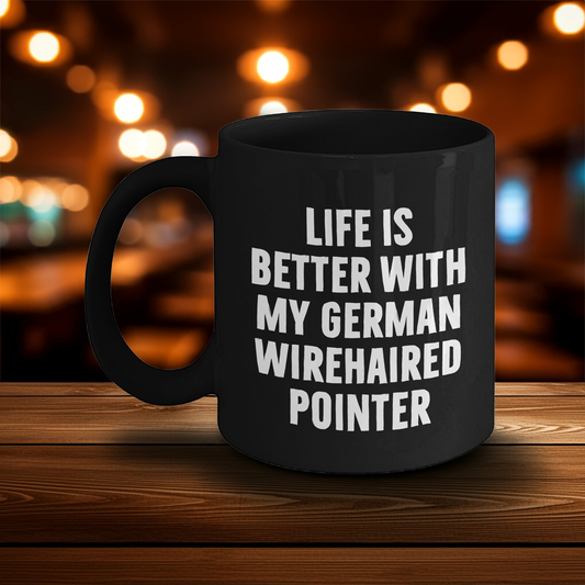 German Wirehaired Pointer Dog Lovers Funny Gifts from Friends for Dad's Special Day, Black Coffee Mug with Life Is Better Quote