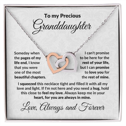 To My Precious Granddaughter Interlocking Heart Necklace with Message Card and Gift Box