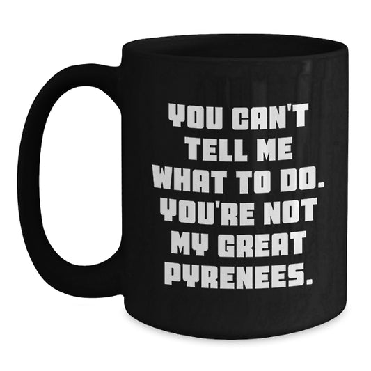 Funny Great Pyrenees Dog Gifts from Friends or Family, Black Coffee Mug, 'You Can't Tell Me What To Do. You're Not My Great Pyrenees.' on Birthday