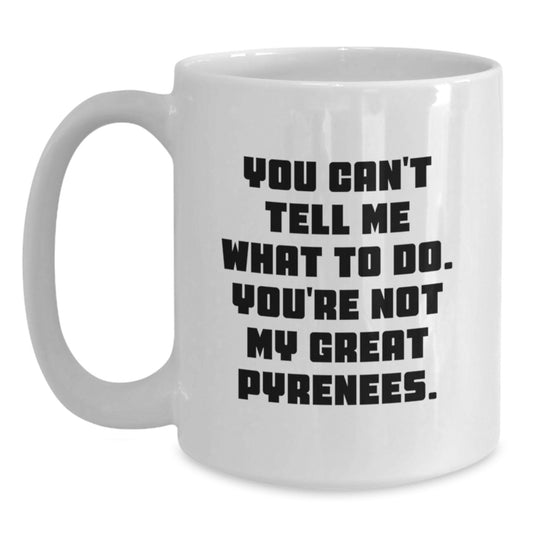Funny Great Pyrenees Dog Lover Gifts from Friends to Family - 'You Can't Tell Me What To Do. You're Not My Great Pyrenees.' White Coffee Mug for Birthday
