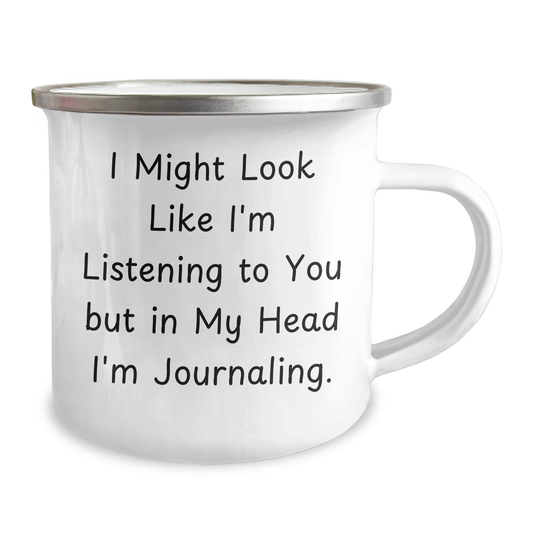 Funny Journaling White Coffee Mug Gifts from Men to Journaling Lovers on Father's Day - 'I Might Look Like I'm Listening...' Quote