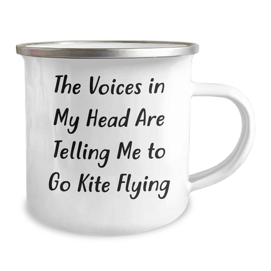 Kite Flying Adventure Camping Mug Gifts for Men from Family, Funny Quote 'The Voices In My Head Are Telling Me To Go Kite Flying' on Father's Day