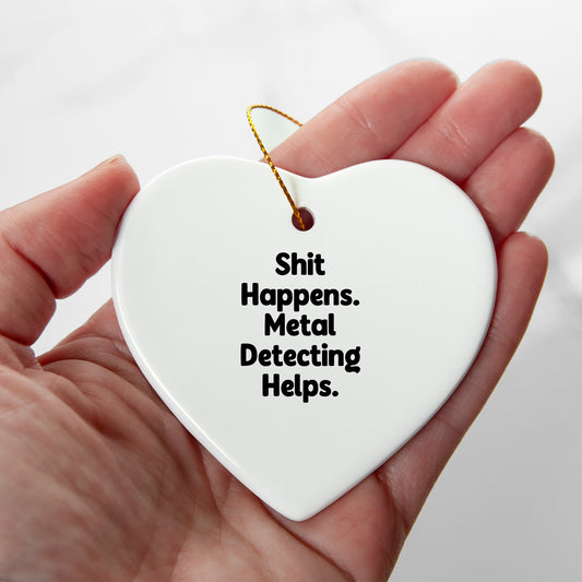 Funny Metal Detecting Heart Ornament Gifts for Men from Friends, 'Shit Happens. Metal Detecting Helps.' Christmas Unique Finds for Women