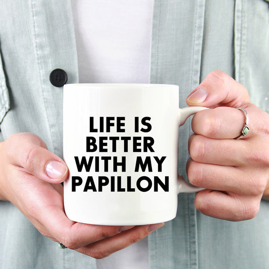 Spring Pet Products Papillon Dog Lovers Gifts from Mom, Funny White Coffee Mug for Mother's Day with 'Life Is Better With My Papillon' Quote, Ceramic, Microwave, and Dishwasher Safe