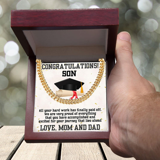 Son Graduation Cuban Link Chain Necklace Congratulations Mom and Dad