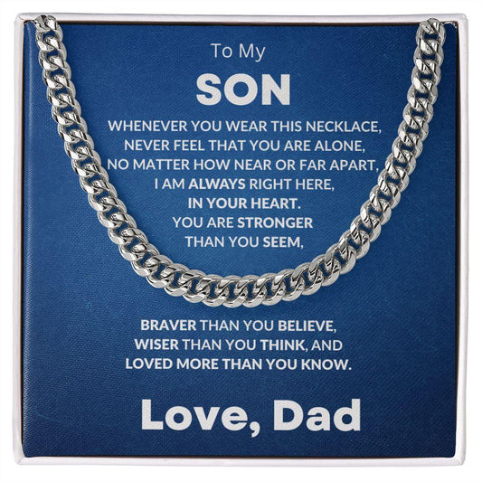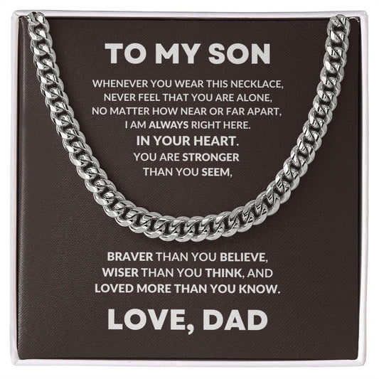 Gift for Son - Always In My Heart - Love Dad - Cuban Chain Link Necklace