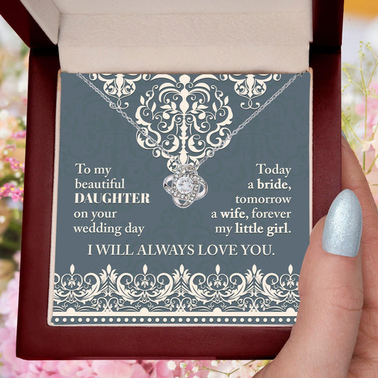 Daughter Wedding Day Gift Today a Bride Always my Little Girl-Love Knot Pendant Necklace