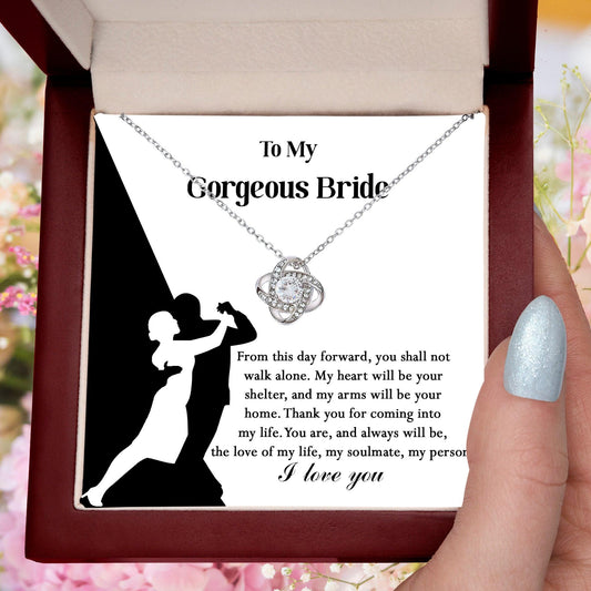 To My Gorgeous Bride on Our Wedding Day, You are the Love of My Life Love Knot Pendant Necklace