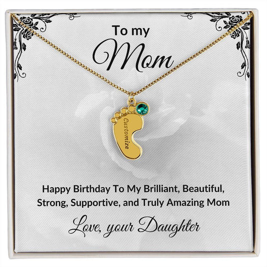 Mother Birthday Custom Engraved Birthstone Baby Feet Charm Necklace
