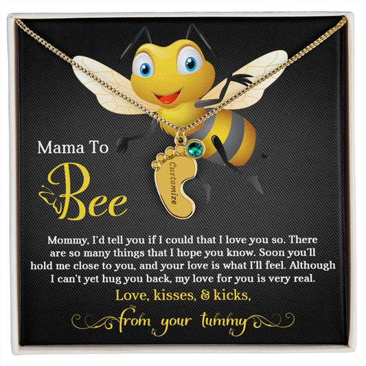 Mama To Bee Love, Kisses and Kicks from your Tummy Engraved Name Baby Feet Charm Necklace with Birthstone