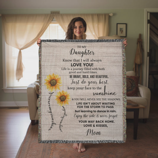 To My Daughter Be Brave, Bold and Beautiful - Life is Learning to Dance in the Rain Inspirational Heirloom Woven Blanket