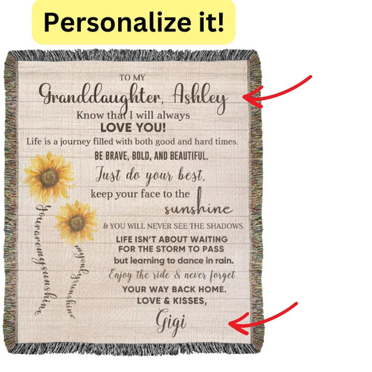 To My Granddaughter, You bring me Hope and Joy Heirloom Woven Blanket