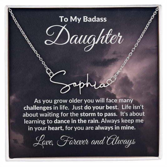 To My Badass Daughter Dance in the Rain Personalized Name Necklace