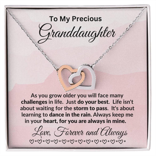 To My Amazing Granddaughter - You Bring Me Love and Joy - Personalized Interlocking Hearts Pendant Necklace