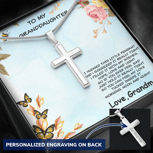 Granddaughter Custom Engraved Cross Pendant Necklace