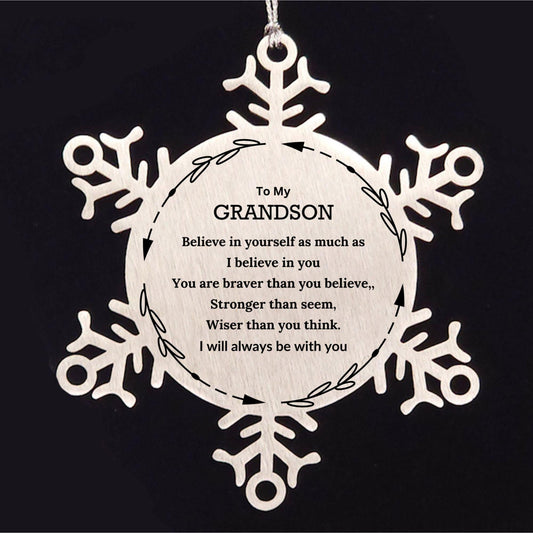 Grandson Christmas Ornament Gifts, Grandson Snowflake Ornament, Motivational Grandson Engraved Gifts, Grandson Birthday, You Are Braver Than You Believe, I will Always be with You