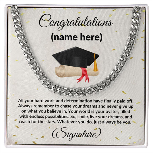 Personalized Graduation Gift for Son, Grandson, Nephew or Brother Cuban Link Necklace