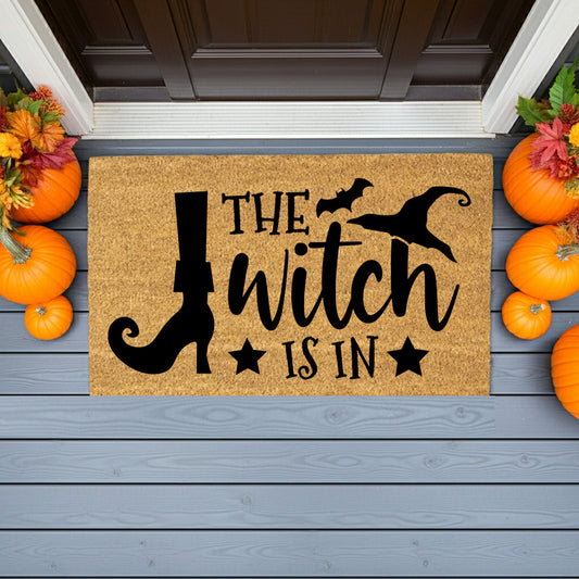 The Witch Is In Doormat – Funny Witch Halloween Outdoor Coir Mat Décor