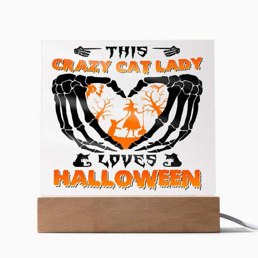 Crazy Cat Lady Loves Halloween Acrylic Plaque Decor
