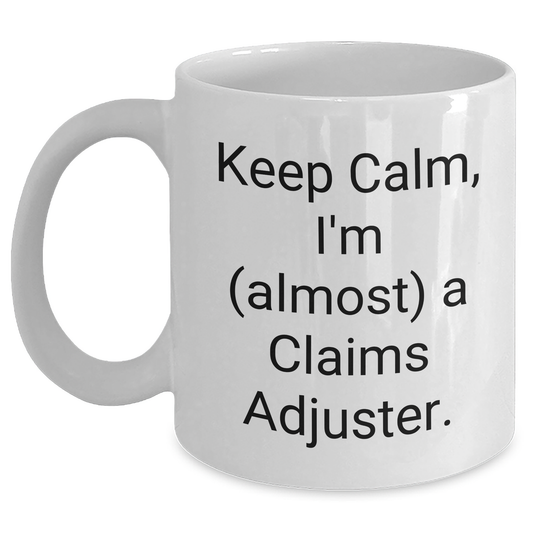 Funny Claims Adjuster Gifts from Friends, Coworkers, or Family - Keep Calm, I'm (almost) A Claims Adjuster. White Coffee Mug for Mother's Day Unique Gifts