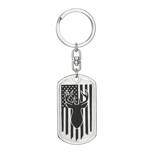 Deer Hunter American Flag Keychain Personalized Engraved Back