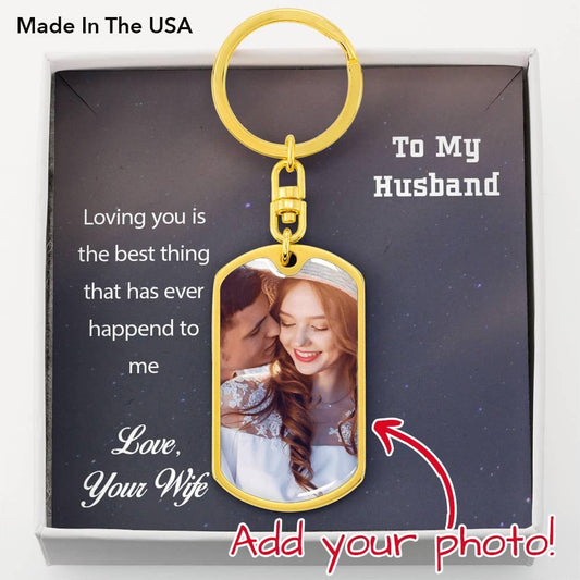 To Husband Personalized Photo Upload Military Style Dog Tag Keychain